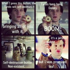 Recently, The Guardian featured a recipe by Ruby Tandoh for jammy dodgers. I have recently discovered that the Eleventh Doctor liked jammie dodgers (the trademarked spelling of the name of these biscuits), and there were a number of Doctor Who episodes featuring those biscuits, one of which is depicted in this excellent montage: